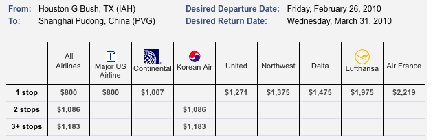housotn--shanghai 的round trip 居然比 shanghai--housotn的one-way 便宜160USD。